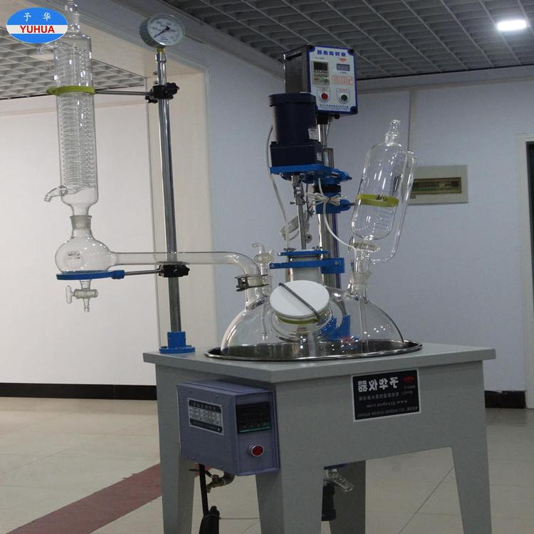 单层玻璃反应釜是一种集真空、蒸馏、回流、搅拌、恒温水浴或油浴为一体的实验设备,这种多功能真空恒温单层玻璃反应釜可在恒温条件下进行各种生化反应和合成反应。不同于双层玻璃反应釜的是其自身就有加热系统,可以直接在恒温条件下进行各种化学和合成反应,其仪器是全封闭系统,既可以利用负压连续吸入各种液体或气体,同时也可以在不同温度下做加注以及蒸馏。也可在恒温条件下进行各种生化反应和合成反应,可利用循环水真空泵产生负压吸入各种液体或气体,也可在不同温度条件工作下回流或蒸馏,如果要进行低温试验还可以在水浴锅的内壁上加冷却盘管,配置低温冷却液循环泵进行低温操作。