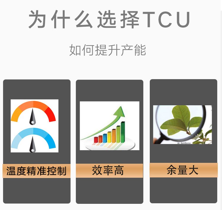 1、冷却作用:一些特殊材料在生产时,会产生很高的一个温度,在不同的温度,需要进行不同的生产步骤。如果,没有一起仪器检测温度,控制温度,那么很多接下来的工作是开展不起来的。TCU温控系统在这就可以起到恒温的作用。当温度过高时,就可以打开TCU温控系统的冷却水,使温度降下来,达到一个温度的程度。